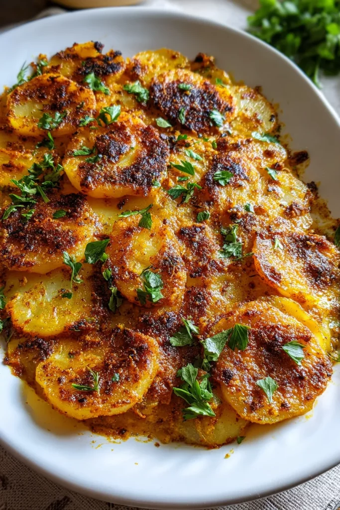 With layers of thinly sliced potatoes smothered in a rich, spiced sauce and topped with melted cheese, this dish offers a delightful twist to classic scalloped potatoes.