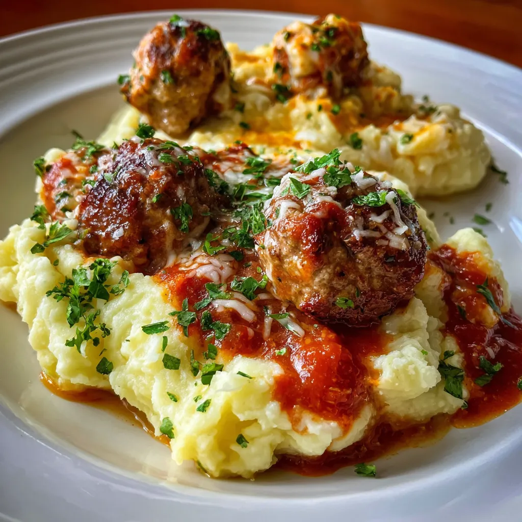 This dish comes together in stages: first you build super-flavorful meatballs, then you simmer a rich tomato sauce, boil and mash potatoes until they’re silky smooth, and finally layer everything before baking. The combination of textures—juicy meatballs, tangy sauce, fluffy potatoes, and melty cheese—means every bite feels like a warm hug. Let’s walk through the steps so you can master this comforting bake.