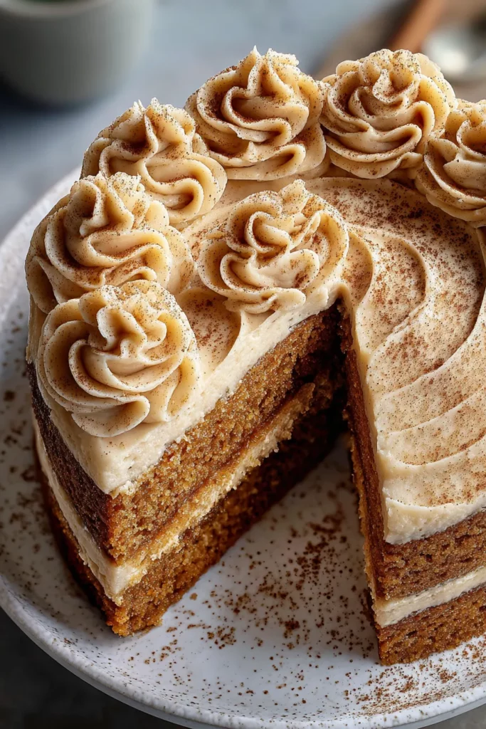 As the first slice emerges, you’ll notice the beautiful contrast between the deep orange cake layers and the creamy ivory frosting rosette. The flavors are familiar yet elevated: a gentle warmth from cinnamon, a hint of ginger and nutmeg, and the caramel notes of light brown sugar blending seamlessly with rich cream cheese. Whether you’re serving this at a family dinner, a fall-themed party, or simply indulging on a lazy Sunday, this cake promises to be the showstopper you’ve been dreaming of. Pull out your favorite cake stand and get ready for compliments that’ll have you grinning from ear to ear.