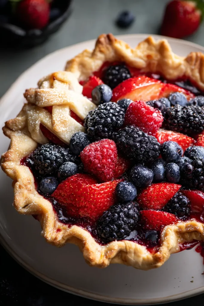 Recapping this delightful journey, our Triple Berry Pie showcases the bright, refreshing burst of summer with minimal fuss and maximum flavor. From the sweet harmony of strawberries, blackberries, and blueberries to the golden, flaky double crust, every element is designed to deliver that mouthwatering “wow” factor with each forkful. As a beginner-friendly dessert, it’s ready in under three hours total—including prep, bake, and rest time—yielding eight slices that clock in around 350 calories apiece. Feel free to print this article and save it for later; you’ll find it’s a reliable go-to recipe whether you’re planning a festive gathering or simply indulging in a cozy at-home treat. Below, you’ll also find a FAQ section to answer any lingering questions about substitutions, troubleshooting tips, and creative spin-offs you might want to try.